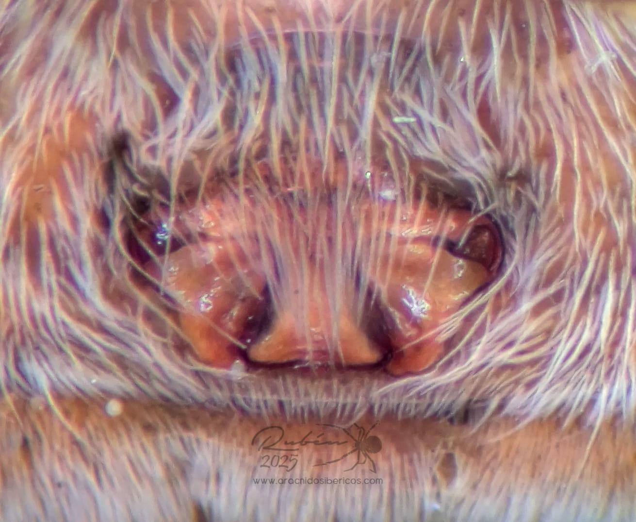Hembra: Epigino más ancho que largo, con surcos triangulares y márgenes laterales dentados, tabique medio fuertemente ensanchado posteriormente, los receptáculos no alcanzan el margen anterior del surco. Longitud corporal: 7 - 7,7 mm.